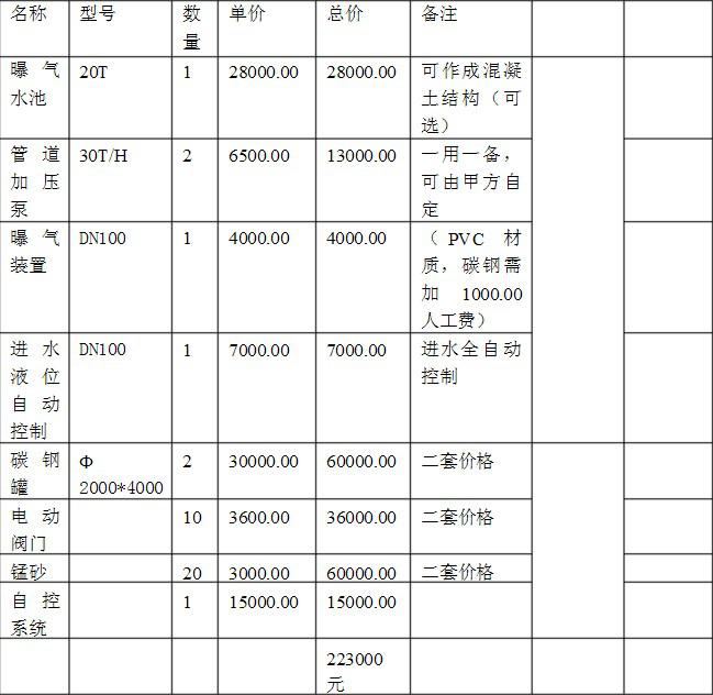 工藝過程中,曝氣裝置中的曝氣池可選用混凝土結(jié)構(gòu)(由甲方制作),也可采用玻璃鋼結(jié)構(gòu)。