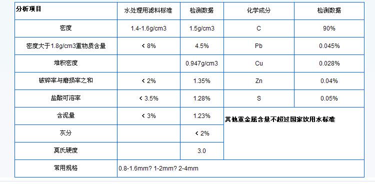 無煙煤濾料在水處理中起的作用好壞,直接影響濾過的水質(zhì),所以在選擇無煙煤濾料的時候,質(zhì)量必須符合國家相關(guān)標(biāo)準(zhǔn)。下為建設(shè)部水處理濾料監(jiān)督檢測中心頒布的CJ/T43 -2005《水處理用濾料》中無煙煤濾料的相關(guān)標(biāo)準(zhǔn)。